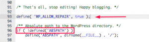 define('WP_ALLOW_REPAIR', true);