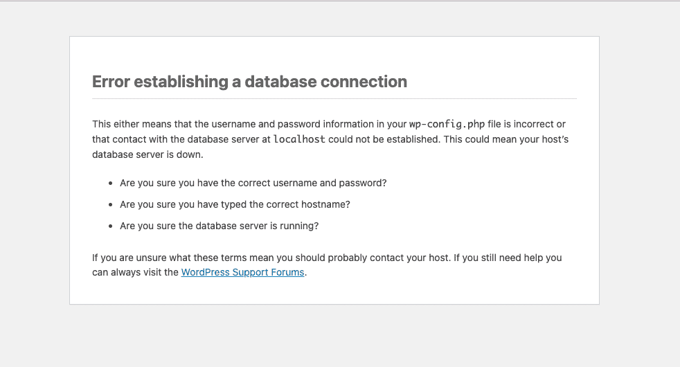 The “Error Establishing a Database Connection” looks terrifying, but it’s usually caused by: