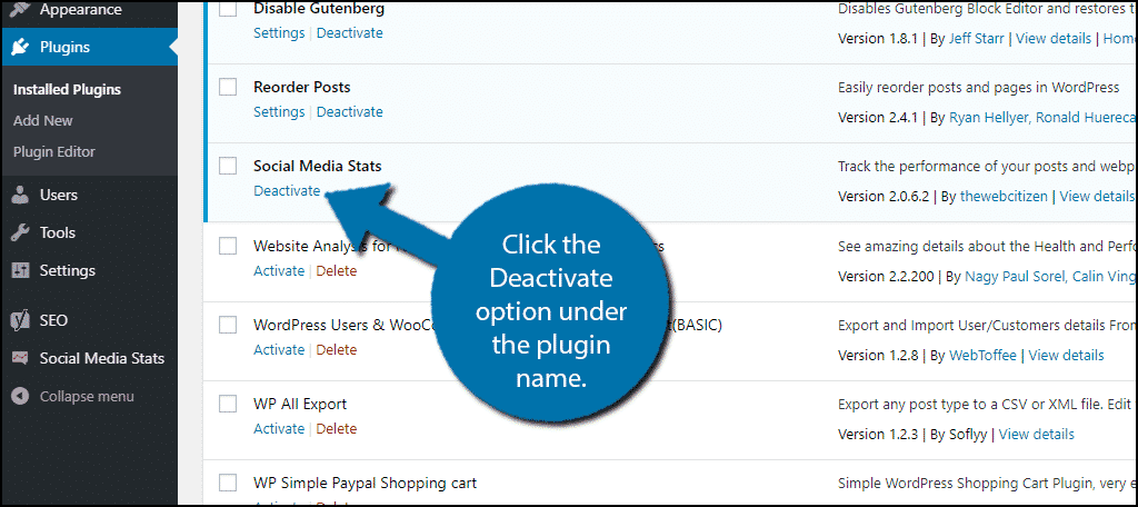 How to disable plugins without dashboard access: